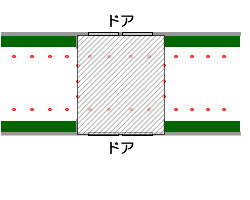 上記斜線部分は乗降が激しく、乗客が密着するエリアであり、すべて危険地帯である。